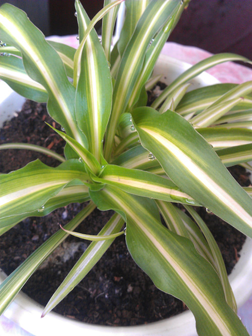 我一直以為吊蘭是和綠蘿、滴水觀音一樣,吐水現(xiàn)象會發(fā)生在葉尖上,就像下面一樣